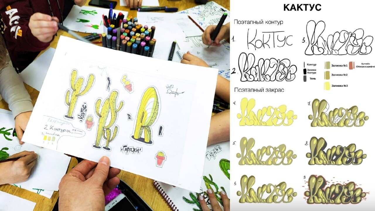 В программе ГАРАЖИ на ДАЧЕ: задания на теги, шрифты, фишки, персонажи, подбор самых важных граффити инструментов.